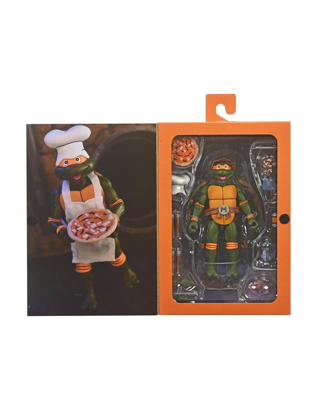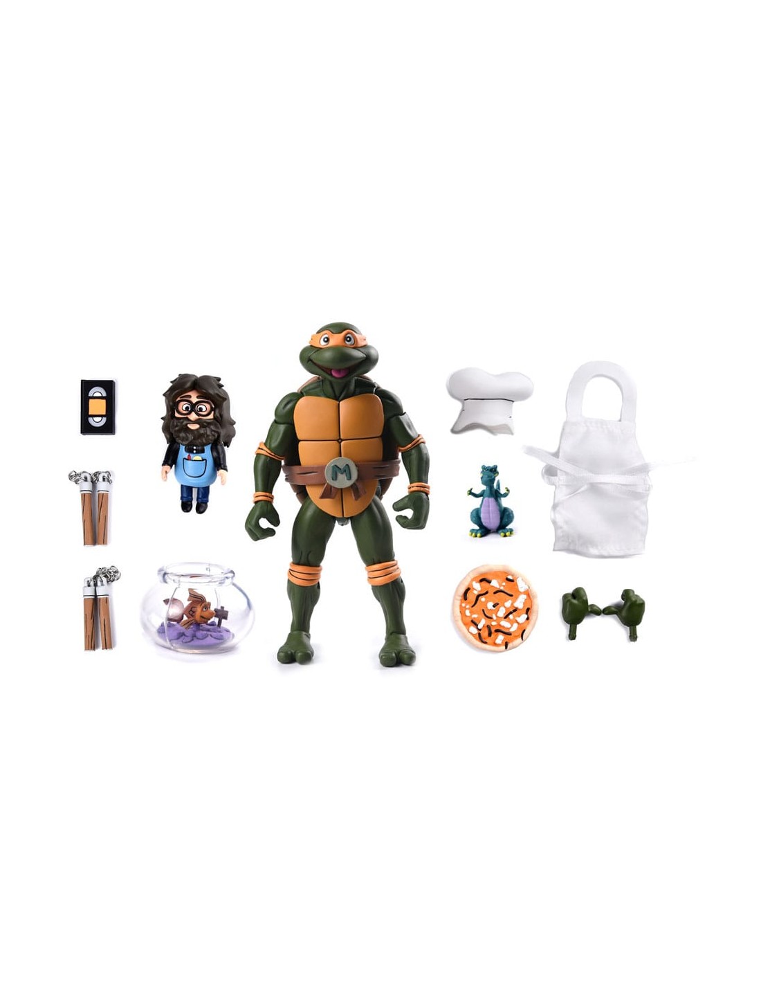 ¡Basado en la clásica serie de dibujos animados de las Tortugas Ninja de los años 80! El fiestero Miguel Ángel está recibiendo el tratamiento «Ultimate» con esta figura de acción a escala de 7 pulgadas cargada con accesorios. ¡Su gorro de chef incluido y su delantal de pizza de productos blandos combinan perfectamente con su pizza de granola y regaliz y otros accesorios específicos del episodio! Viene en un nuevo empaque coleccionable estilo Pizza Club VHS.