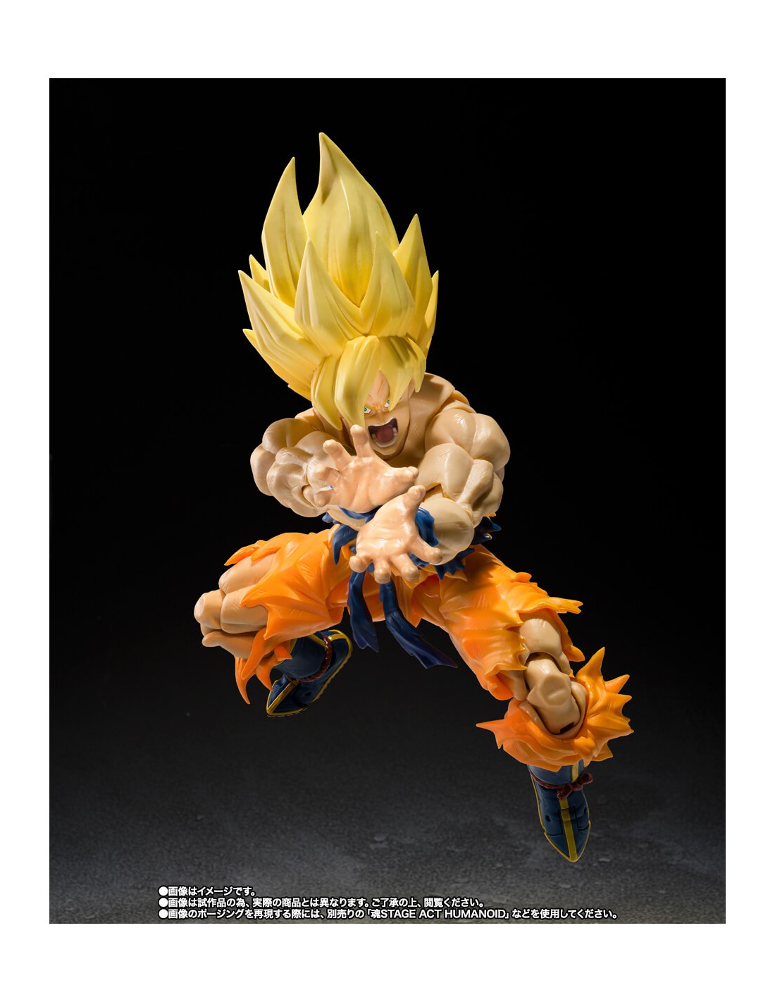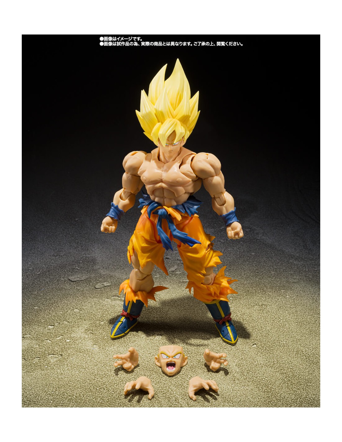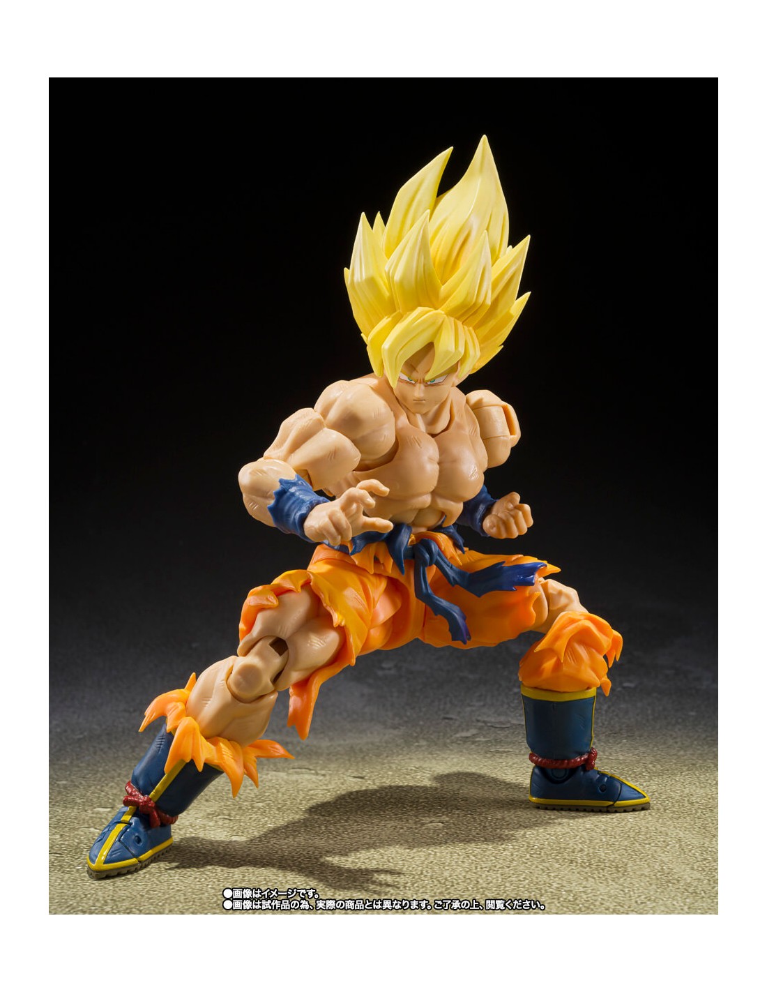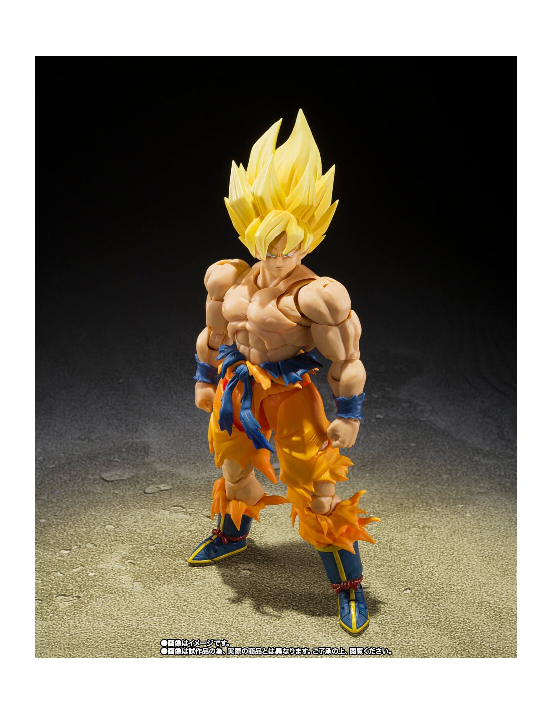 Se incorpora a la línea S.H. Figuarts de Tamashii Nations la figura de Super Saiyan Son Goku en su transformación Saiyajin más legendaria. Mide 14,5 cm y está basada en el personaje del anime «Dragon Ball Z». Contiene 2x pares de manos intercambiables y 1x expresión de combate extra. Puedes exponerla con la figura de Cooler (se vende por separado) y recrear épicas escenas de batallas